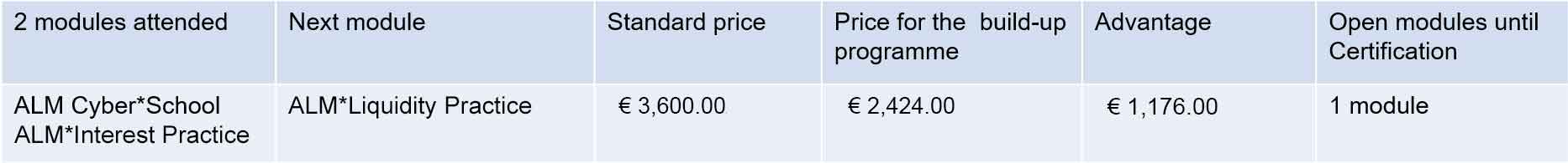 Then book the next module in the ALM*Diploma build-up programme with a price advantage and come one step closer to your certification. Example: